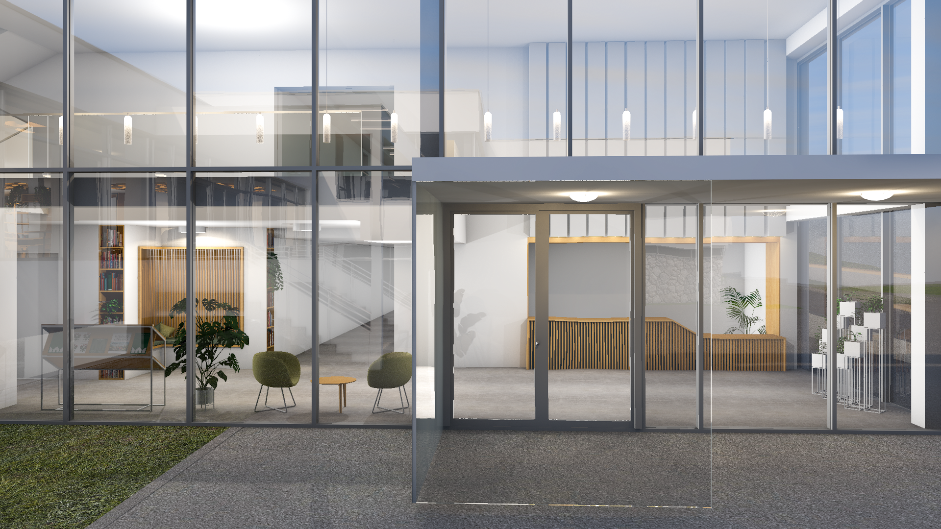 A recepciónál új bútorként egy szezonálisan változtatható installációs keret jelenik meg, mely 9 különböző magasságú keretből áll. A keretekre helyezhető tölgy lapok a szezonális dekorációknak adnak helyet. A lapok a szezonok közötti időszakokban virágládákra cserélhetőek.